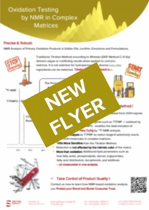 Sichern Sie Produktqualität und Verbrauchervertrauen durch direkte und verlässliche Oxidationsmessungen. Anders als herkömmliche Methoden (z. B. Titration nach Wheeler, DGF-Methode C-VI 6a) erfasst unser NMR-basierter Ansatz Oxidationsstadien auf molekularer Ebene – keine Black Boxes, kein Rätselraten.